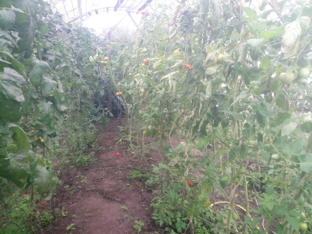 Im Gewächshaus reifen die letzten Tomaten nach. Die Ernte war eher unterdurchschnittlich. Wenn sie noch abreifen, ist es okay…