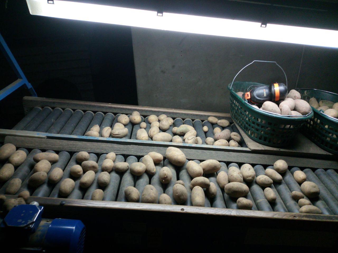 Kartoffelsortierung: vorne die guten, hinten die Futterkartoffeln